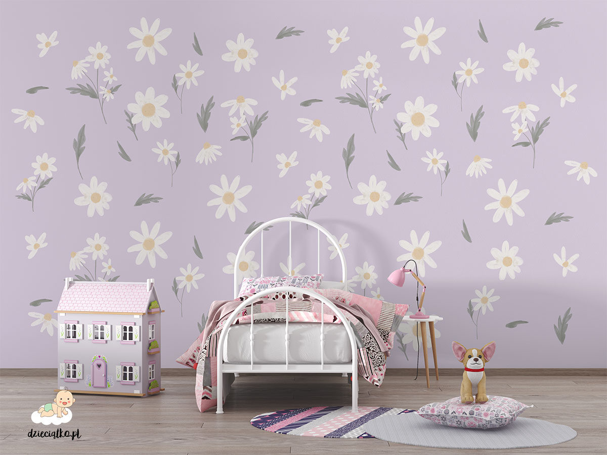 The highest quality wall mural with a unique pattern of “Daisies” which is ideal in rooms for children. Four options of color are on offer. After you placed your order, please let us know about your chosen option.