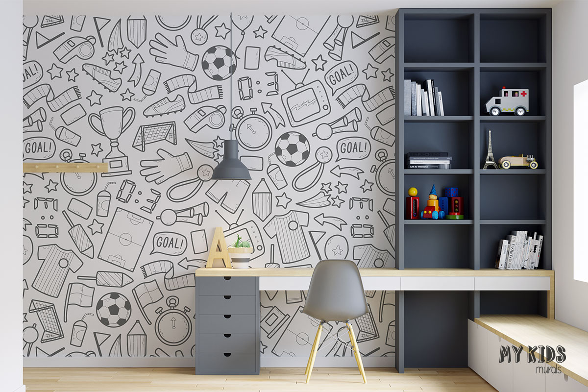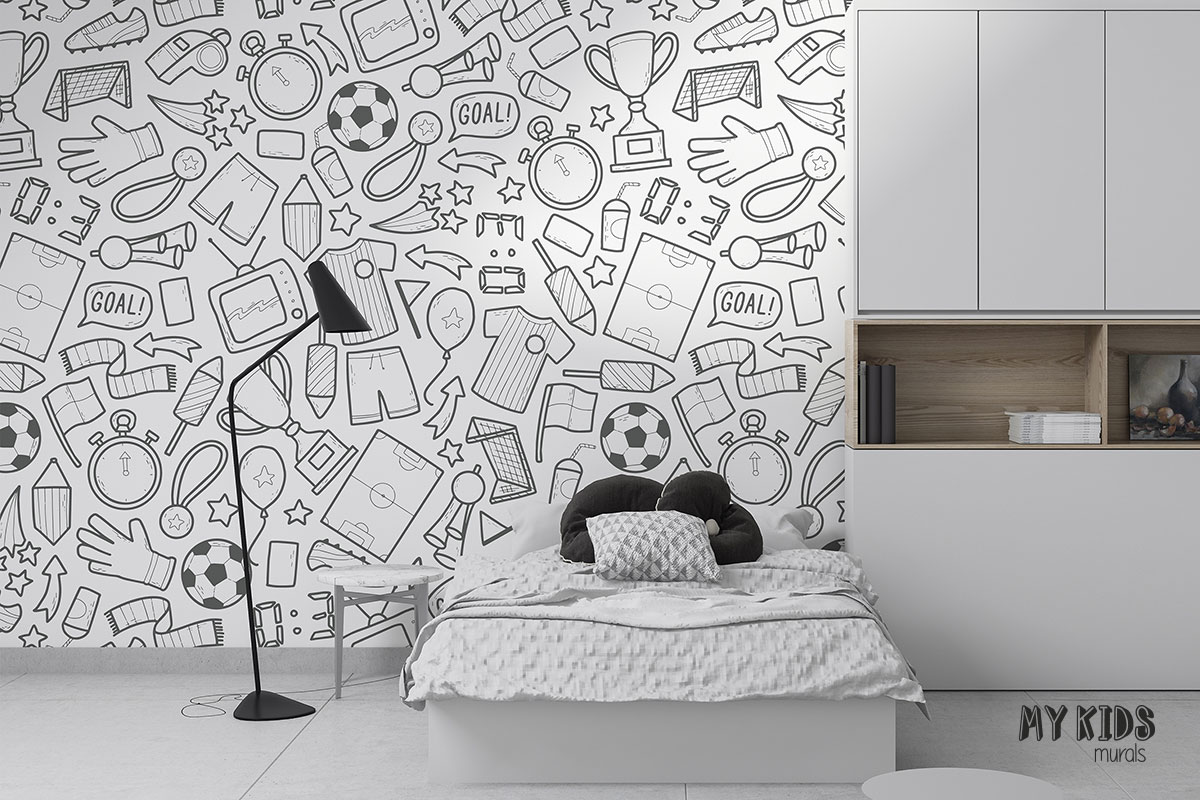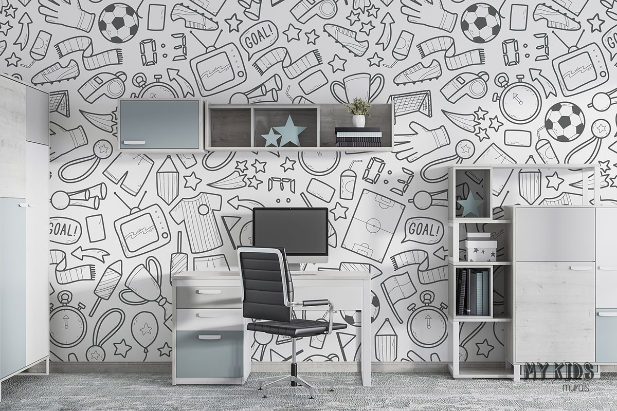 The highest quality wall mural with a unique pattern of “Football gadgets” which is ideal in rooms for children.